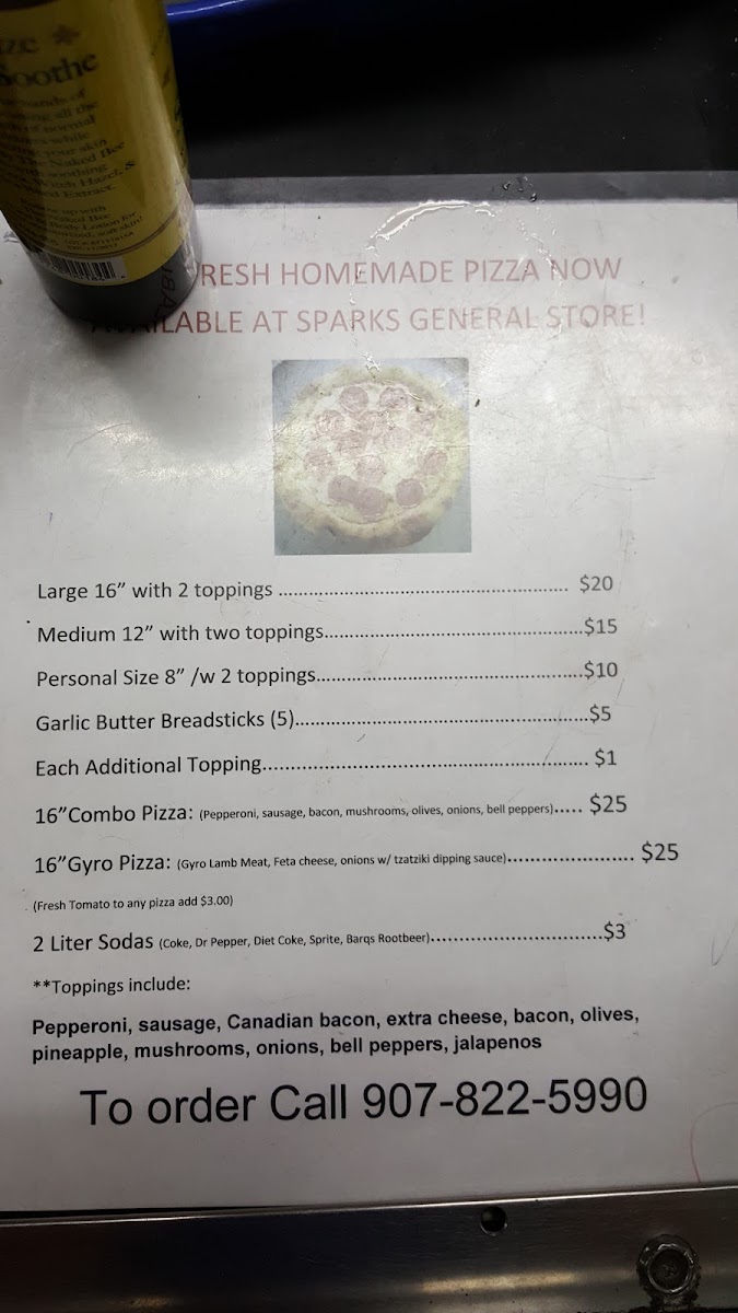 Welcome to Sparks General Store, a hidden gem nestled in Glennallen, Alaska. This unique spot not only serves as a top-notch convenience store but also offers a delightful menu, particularly lauded for its exceptional pizza. Customers rave about the freshness and quality, with many declaring it among the best they've ever tasted.